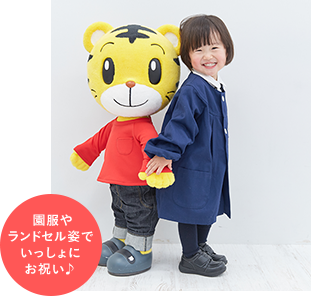 大好きなしまじろうと遊びながら撮影できる特別プラン。キャンペーン期間限定で、園服やランドセル姿での撮影もOKです!