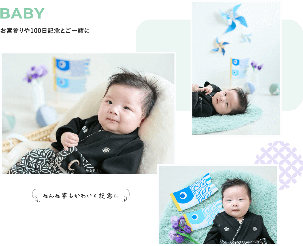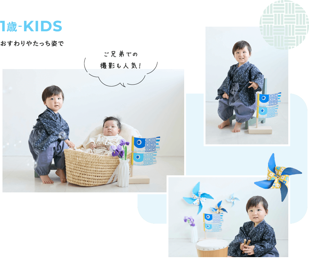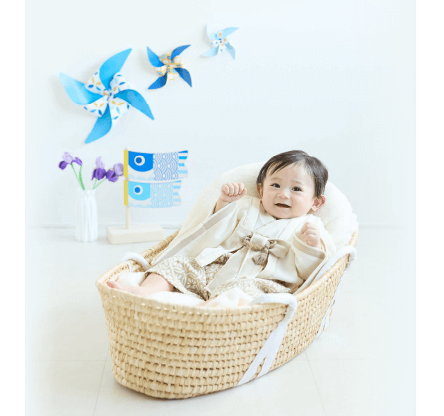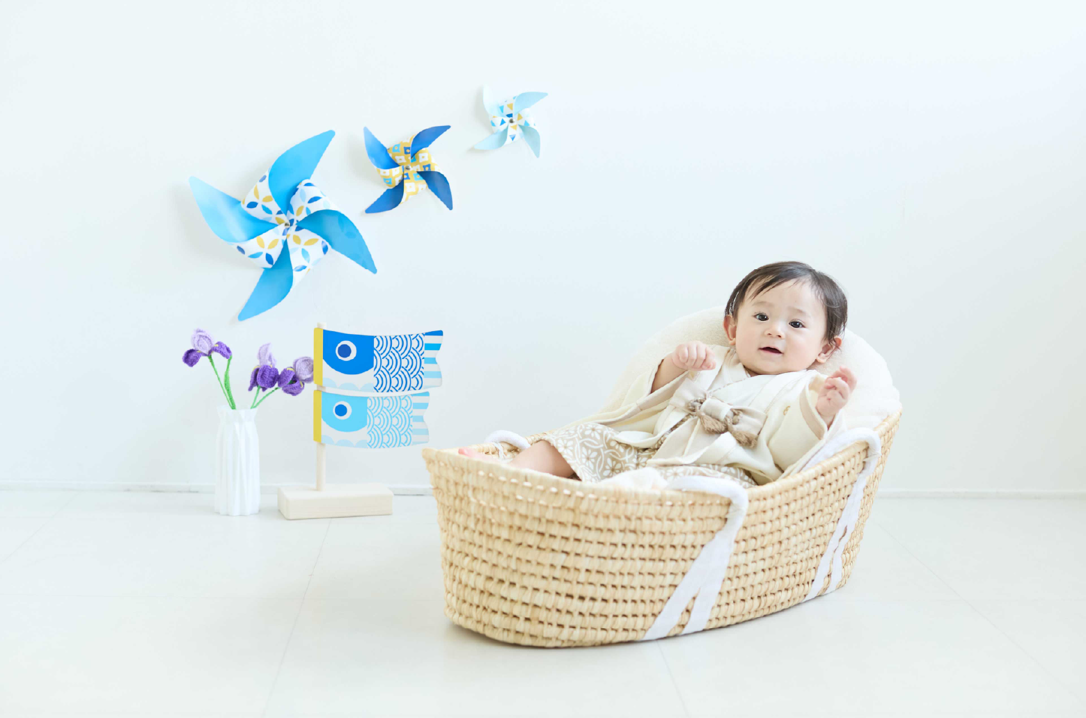 「端午の節句」にぴったりの小物や衣装を、期間限定でご用意。ご予約プランの中の1シーンとして、追加料金なしで撮影いただけます。