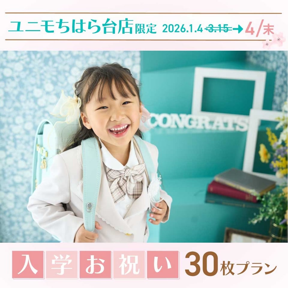 【ユニモちはら台店】入学お祝い30枚プラン|期間限定のお得なプランが新登場