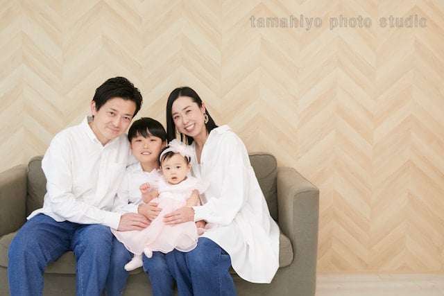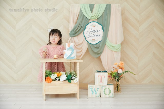 ナチュラルな木目の柄で、お子様のソロショットはもちろんご家族写真も素敵にお撮りできます☆