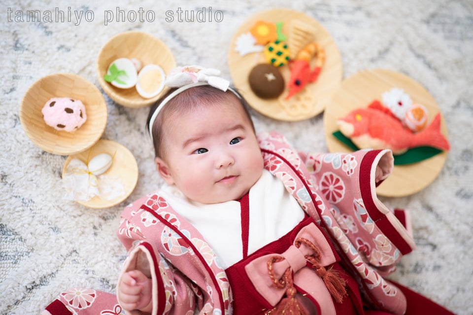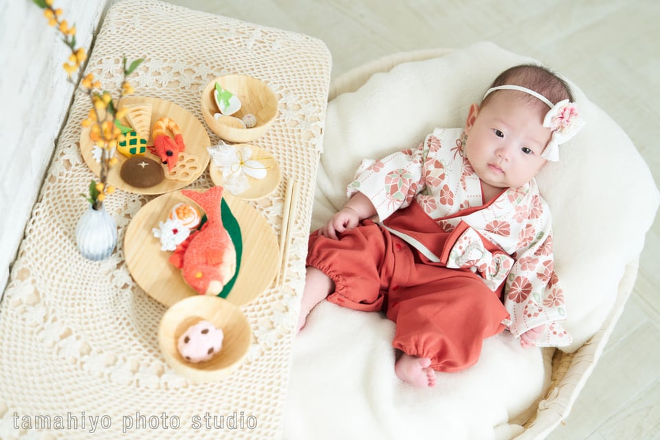 持ち込みの和風ロンパースでの撮影も可能ですのでご希望の際はスタッフにお伝えください♪